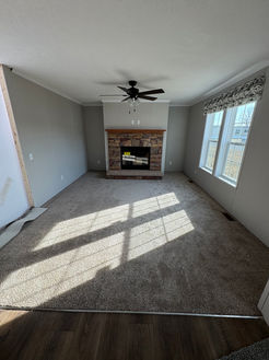 This home offers just under 1600 square feet of open floor plan living space with a living room and family room equipped with a gas fire place! The kitchen boasts 42" natural hardwood cabinets with beautiful white quartz solid surface countertops! A large kitchen island and dining room area are perfect for entertaining and seating the whole family. This home is also equipped and ready to accept a 2 car garage should you wish to add it on. Contact our leasing office for financing details or complete a financing application by clicking the link below for 21st Mortgage. This home is due to be delivered in March 2025!!!